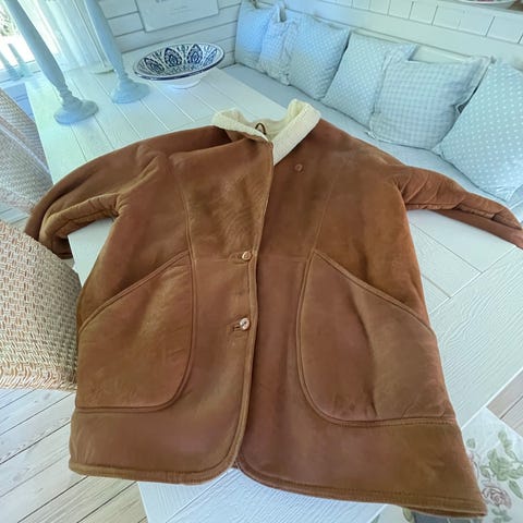 MEOTINE jakke til i størrelse XL. Jakken er fremstillet i ægte grøn ruskind med glat, sort polyesterfor. Klassisk skjortekrave, knaplukning foran og brystlommer med klap og knap. Velegnet som overgangsjakke eller let yderjakke. Rens anbefales hos læderekspert ifølge plejeanvisning.