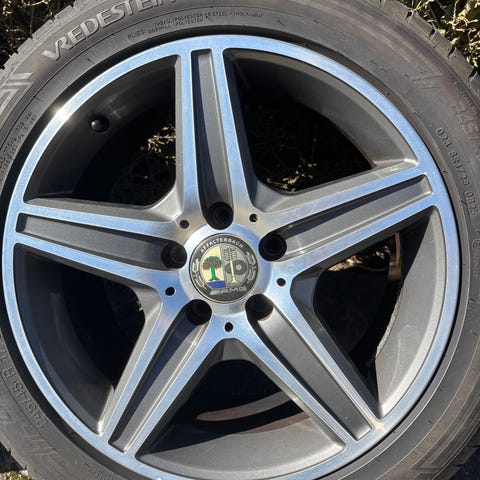 Sælger disse Mercedes fælger med vinterdæk, 50mm mønster tilbage på bagdæk 40mm på frontdæk, ingen store ridser på fælger
