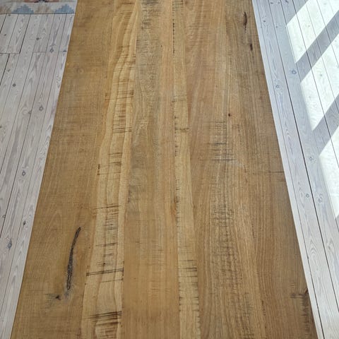 House Doctor spisebord, Massiv mangotræ sortbejdset. Sorte metalben, hamret look. Rustikt bord. Mål: L. 200 cm, B. 90cm, H. 76.5 cm. Tykkelsen på bordpladen er 25 mm med facet kant. Tungt bord! Overflade skrammer forekommer. 2 stk. Prisen er pr. stk.