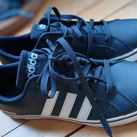Nye og ubrugte Adidas sneakers i størrelse 43 1/3. Modellen er i rød og hvid farvekombination med de karakteristiske tre striber på siderne og Adidas-logo på hæl og pløs. Overdelen fremstår som syntetisk materiale/læderlook med perforeret tåparti for ventilation. Skoene har snørelukning kombineret med velcrorem øverst. Ydersålen er mønstret for bedre greb. Velegnet som hverdagssko eller fritidssko (sneakers)