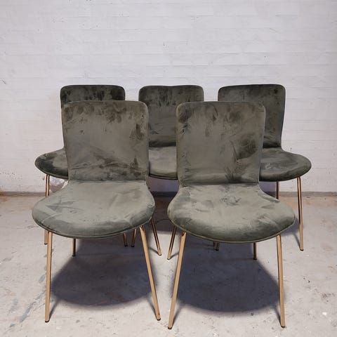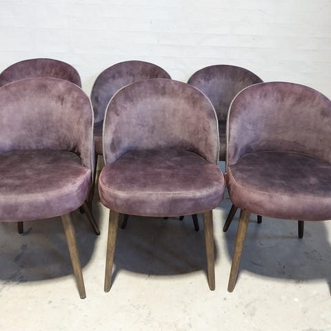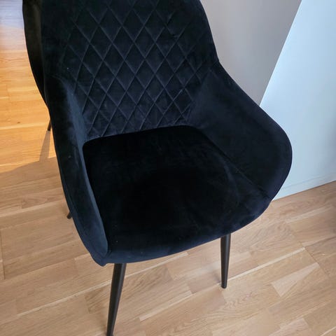 House Doctor spiseborsstole. Polstret i velour stof fv. brændt orange med sorte metal ben.