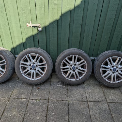 4 stk. 16” fælge med sommerdæk + 2 ekstra dæk. Har siddet på Ford S-Max. Fælge og dæk er brugte. Dæk har minimum 5mm slidbane.