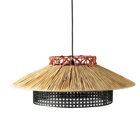 Fransk Market Set loftslampe købt i Beau Marché i naturflet og metal. I fin stand og kan afhentes på Østerbro.