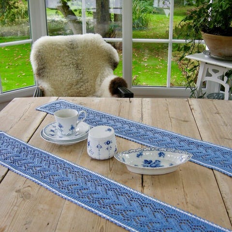 Kniplet Bordløber / Festremse i hør
