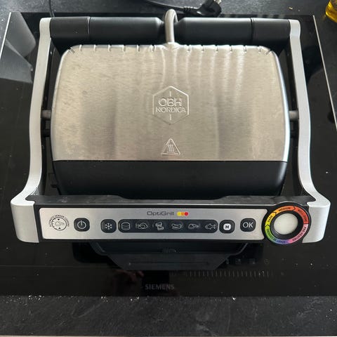 Tefal Optigrill XL elektrisk grill i sølvfarvet design.
