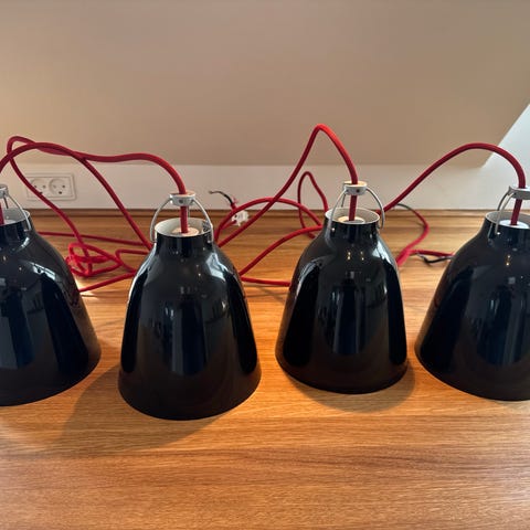 2 fine pendler fra Fritz Hansen. Blank hvid, måler 25,8 cm.