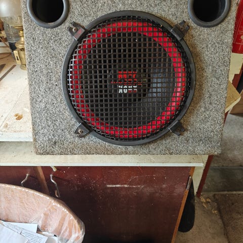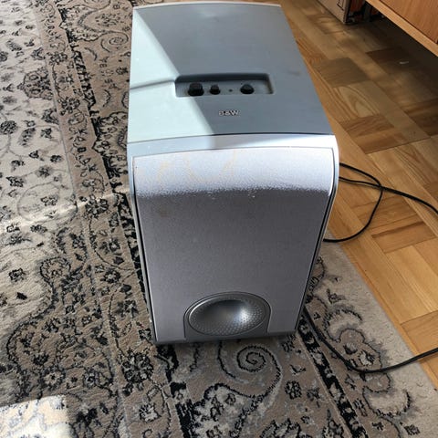 High-end subwoofer i optisk god stand, men det elektriske i forstærkermodulet ser ud til at være defekt med kun et svagt lydniveau - det kunne være en billig reparation for en hobbyelektriker, eller stadig god til reservedele af god kvalitet.