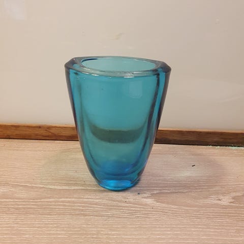 Vase i blåt glas.H 19 cm, Dia 6 cm.Flot og velholdt, uden skår eller revner. Gå til varen, for flere billeder.(A10).