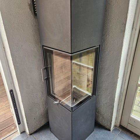 Hvis du skal købe tilsvarende ovn fra ny i dag er prisen over 50.000 dkk. Tynd metal underlagsplade medfølger. Se evt. flere info omkring mål mv. her: https://ventonordic.com/brand/spartherm/passo-s/