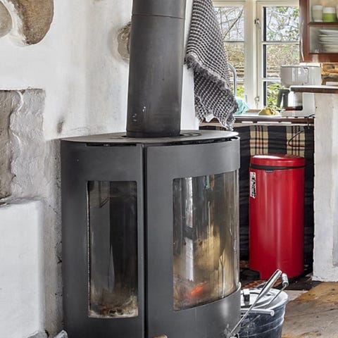 Brændeovn fritstående sort stål med buet glas