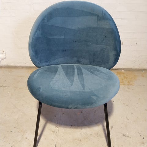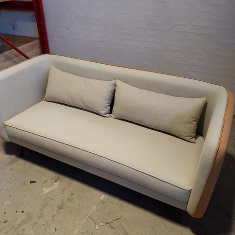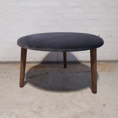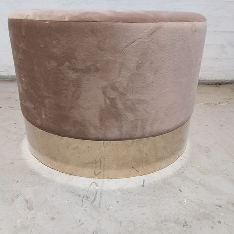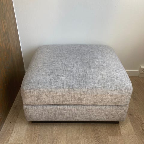 Hübsch puf. Sennepsgul stof (ens med de sofaer vi også sælger) Lettere beskidt - ikke forsøgt renset.