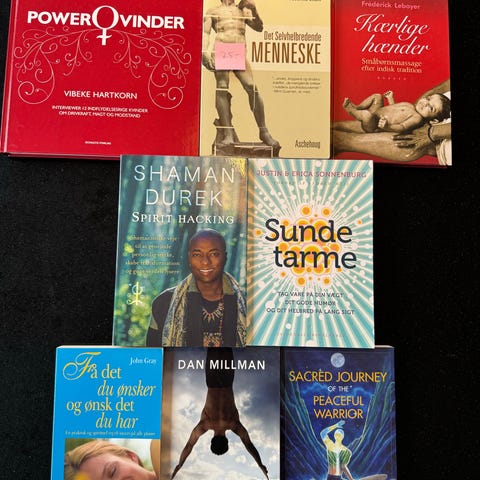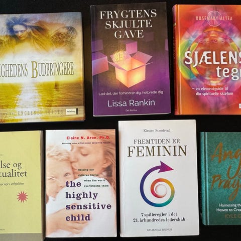 spirituelle bøger fra diverse forfattere. Bøgerne omhandler emner som personlig udvikling, åndelighed, bevidsthed, healing og indre rejse. Sættet består af flere forskellige titler på både dansk og engelsk, herunder bøger om engle, bevidst evolution, indre lys og lignende temaer. Velegnet til læsere med interesse for spiritualitet, selvudvikling og alternative livssyn.