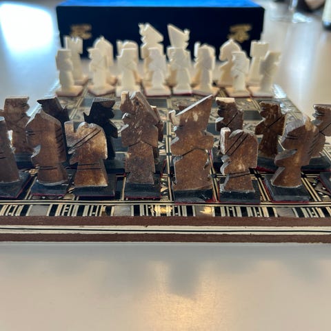 Skakpladen har 4.stk store drager på 15.cm i højden, der holder pladen.