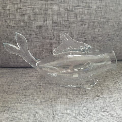 Flot glas fiske-vase fra Stockholms Glasbruk. Formentlig fremstillet af Ture Berglund.