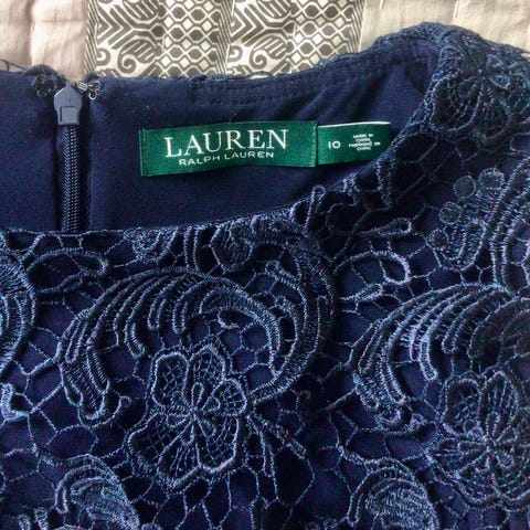 Smuk marineblå blondekjole fra Ralph Lauren i str 36-38. Aldrig brugt. Knælang