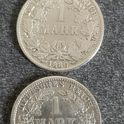 Vesteuropa Mønter TYSKLAND SØLV 1 MARK 1887 A + ½ MARK 1907 A 8.34g .900Ag
