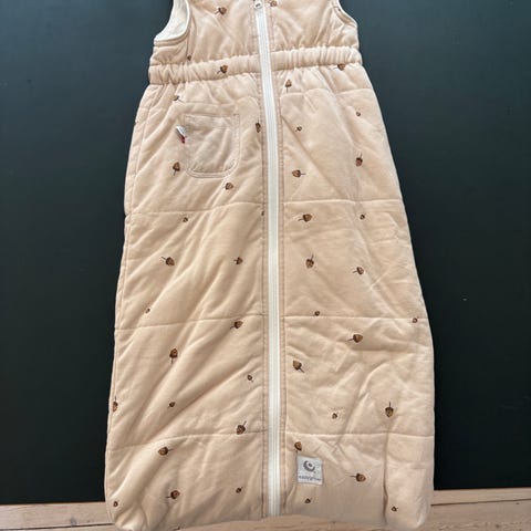 Sovepose til klapvogn for at holde din lille guldklump varmen. Huller i to “etager” for seler til ryggen og et hul til selen mellem benene. Har nogle små pletter hist og pist, men de kan nemt fjernes med en våd klud. Brugt men i god tilstand. Ingen ridser eller huller (udover dem til selerne). Fint og flydende lynlås.