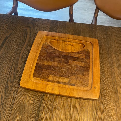 Massivt retro teaktræs skærebræt med Saftrille