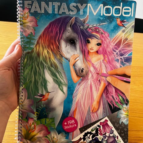 Malebogen indeholder skitser af havfruer og andre fantasy væsener, som kan males efter egen smag. Derudover medfølger en masse klistermærker til at skabe forskellige fantasy-inspirerede looks og outfits på modellerne.