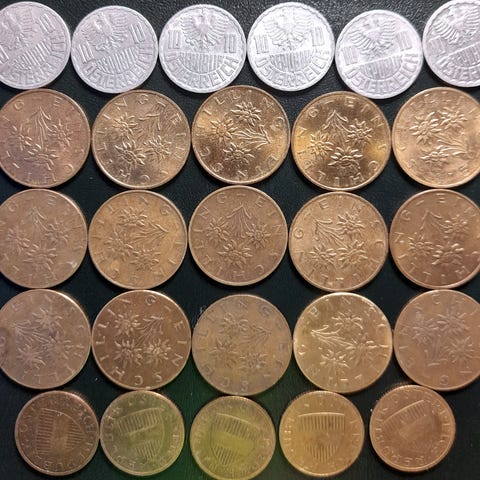 Vesteuropa Mønter ØSTRIG 1 SCHILLING 1946, 1947 + 50 GR 1947 + 3 x 10 + 3 x 2 GR