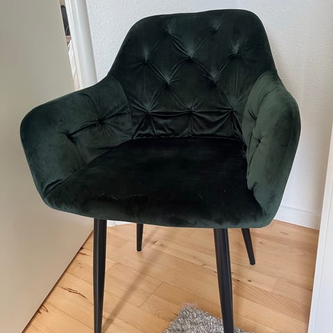 4 Stk. pæne og velholdte spisebordstole i mørkegrøn velour sælges samlet for 500 kr