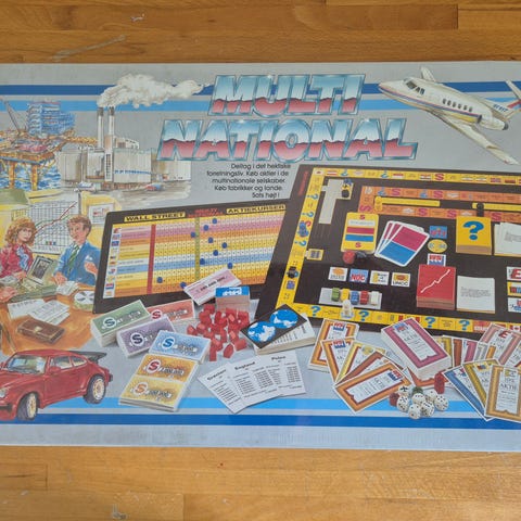 Multinational! Genialt brætspil om investering og aktiehandel. Spillet går ud på at investere penge i forskellige virksomheder og brancher og følge udviklingen i aktiekurser og økonomiske begivenheder.