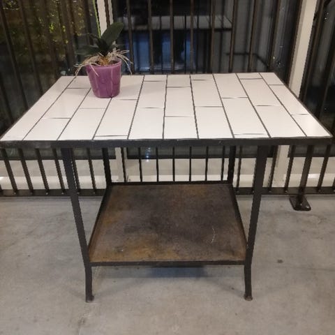 Hvid metal bakkebord med udskæringer