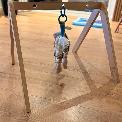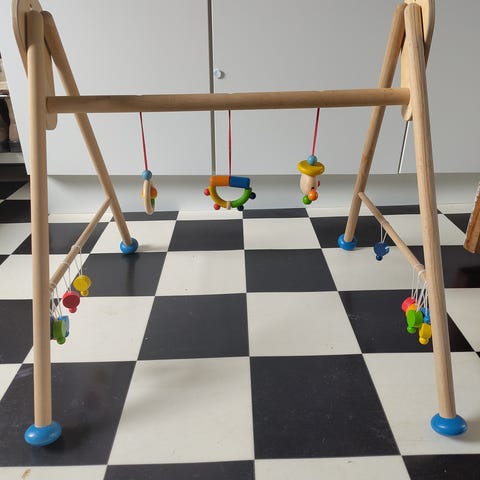 Aktivitetsstativ i træ. Markeringer hvor der har hængt legetøj ellers i fin stand.