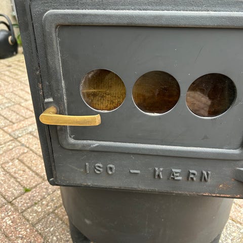 Lille brændeovn fra Asgård - virker og skaber meget varme. Synlige brugsspor.