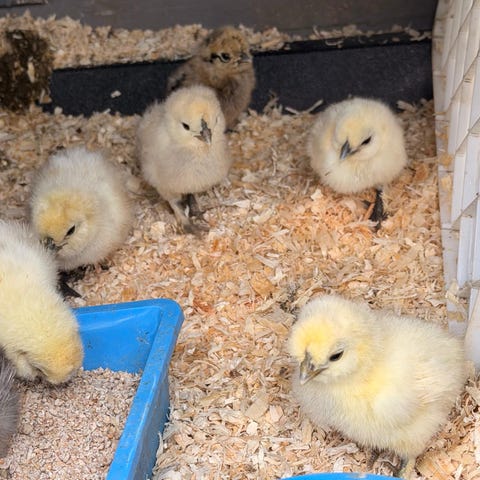 Sælger 5 stk. utrolig søde og livlige Silkehøns kyllinger. De er ca. 2,5 uger gamle og trives rigtig godt under varmelampe.