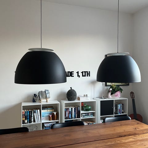Spisebordslampe med hæve/sænke funktion, der ændrer lysets retning. Fuld funktionsdygtig og uden buler/ridser. Designet af Fernando Prado og produceret af Lumini