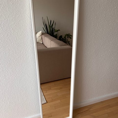 Jysk spejl i fuldfigur med rektangulær form og hvid ramme. Spejlet er egnet til ophæng på væg eller dør og passer til entré, soveværelse eller garderobe. Bagsiden har ophængsbeslag, så spejlet kan monteres lodret og vandret.