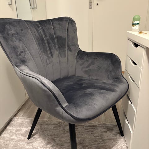 Elegant og komfortabel stol i blød velour med et stilrent og tidløst design.
