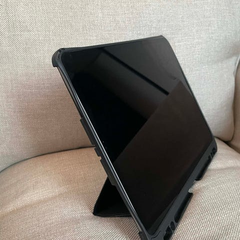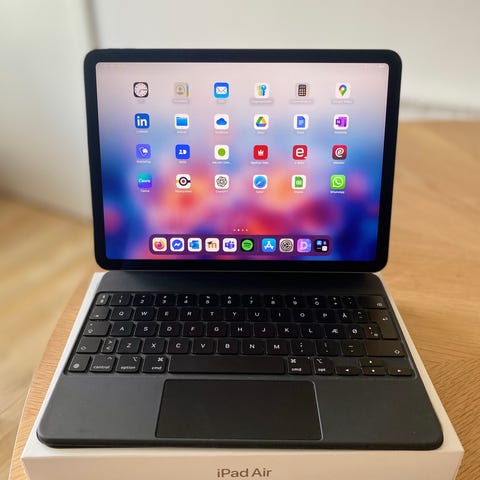 Står som ny, brugt meget sjældent Apple iPad Pro tablet med 128 GB intern hukommelse. Enheden har stor skærm med smalle kanter og kamera på bagsiden. Velegnet til brug som arbejds- eller underholdningstablet med god lagerplads til apps, dokumenter, billeder og video. Ipaden sælges også med et tilhørende magic keyboard