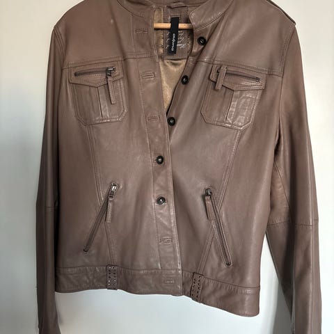 Jakke, str. 42, Alain Klein Design Collection, Sort med brunlig "Pels", 100 % polyester og 100 % Acrylic, Næsten som ny, Den nåede desværre kun at blive brugt 1 gang, derfor skal den videre nu, Den er fra skulder til bund 90 cm lang. Den måler fra skulder til skulder fra ryggen56 cm. Ærmerne måler 56 cm lange. Den har 2 lommer foran og indvendig i "Pelsen er der 2 skrålommer. Den kan vendes med pelsen udad. Køber betaler selv porto. Nyprisen var 4000 kr. men sælges for