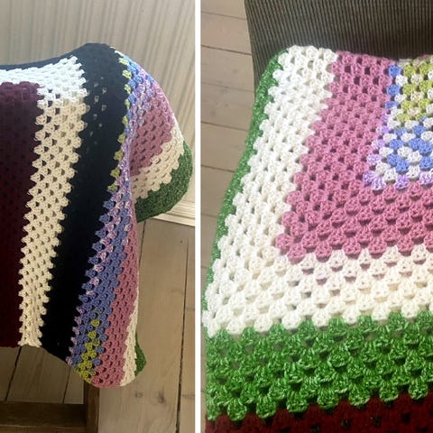 Håndlavet hæklet tæppe, flerfarvet