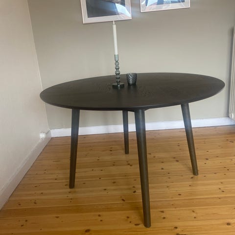 Lisabo spisebord i sort asketræ fra Ikea med 4 stole fra Jysk i flot stand