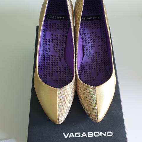 Camelfarvet plateausko i skind i str 36, aldrig brugt, hæl højde 8 cm. Beses og købes i Rødovre. Sender ikke.
