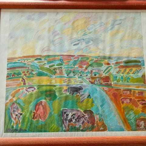 Hans Voigt Steffensen plakat med motiv af danser i gule og rosa nuancer. Plakaten er indrammet og velegnet til ophæng i stue, gang eller andre opholdsrum. Kunstnernavnet fremgår øverst på plakaten.