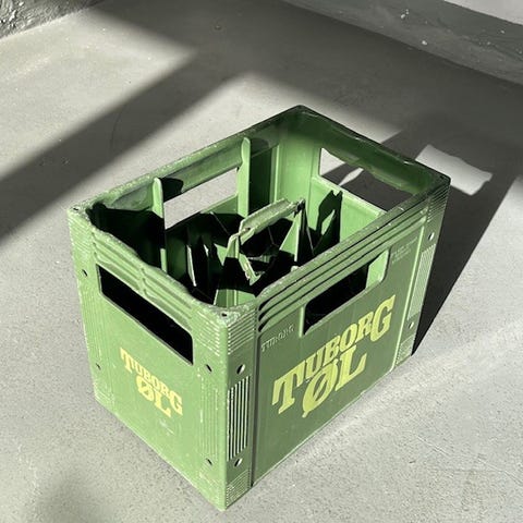 Carlsberg og Tuborg kasser i plast, velegnet til opbevaring i køkken, bryggers eller andre rum. Kasserne har bærehåndtag og ruminddeling indvendigt, som gør det nemt at holde styr på indholdet. Farverne er rød og grøn. Kan nemt tages med på cykel el. knallert! Retro fra 1970. Sælges helst samlet pga flytning.
