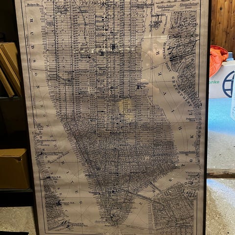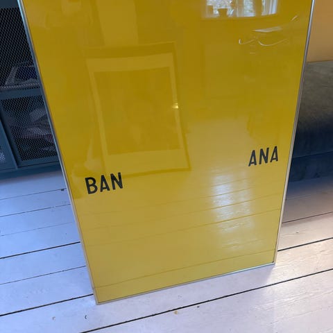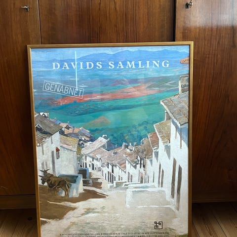 Stor Old Trafford plakat i mørk egetræs ramme.