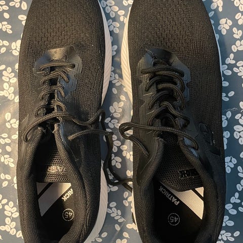 Patrick letvægts sneakers i sort i størrelse 45. Brugt en enkelt gang. Kan sendes, køber betaler fragt.