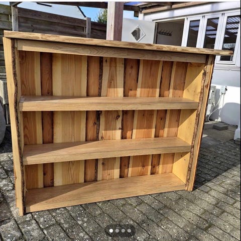 Tralle i lamelkonstruktion. Målene er 159 cm i længden og 48 cm i bredden. Være brugt som sengegavl men kan også bruges til andre gør-det-selv formål