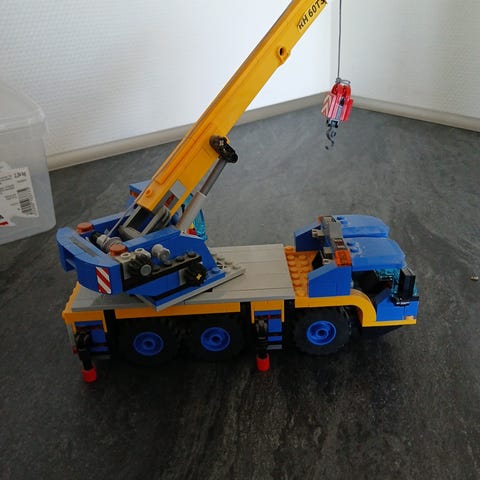 Lego City Mobilkran 60324. Med funktionel kranarm, støtteben og kranspil. Desuden figurer af chauffør og arbejder. Som nyt! Helt intakt. Udgået Lego-model. Manual medfølger.