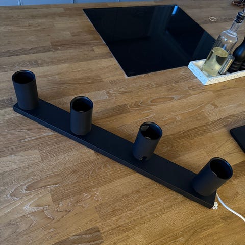 4 stk led spots med tilhørende skinne som kan hænge frit eller monteres i loftet 3.30 m
