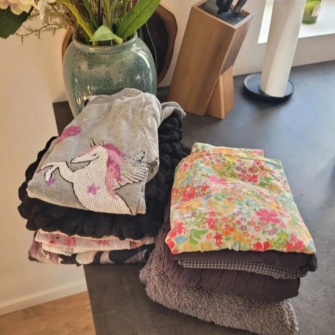 pige tøjpakke i str. 116 i multifarvede nuancer. Pakken består af blandet børnetøj til pige, herunder overdele, underdele og fodtøj, som på billederne. Tøjet er i forskellige farver og mønstre og egner sig til hverdag og fritid for et barn, der bruger størrelse 116.