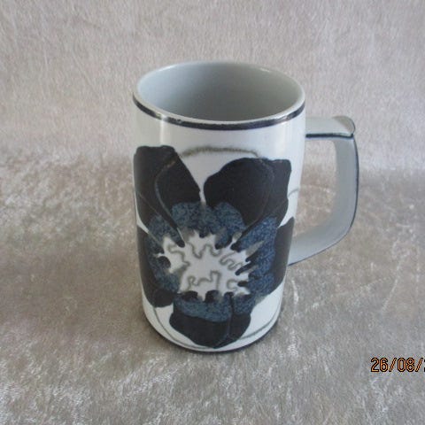 Virkelig flot krus produceret af Royal Copenhagen i 1970, som viser den nye lillebæltsbro på fronten. Grå fajance med et stort håndtag i siden. Diameter 8 cm og højde 14 cm.