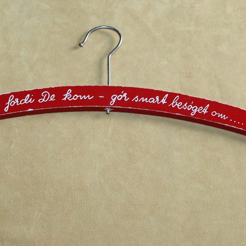 Retro tøjbøjle med tekst: Arnestund og hyggefest venter altid velset gæst