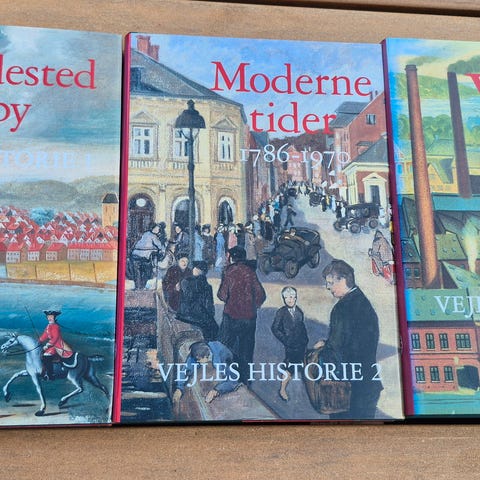 En byhistorie Vejle ved århundredskiftet, -, emne: lokalhistorie, 1984. 80 sider, ill, ib. – Genudgivelse af: Danske Byer og deres Mænd, 6. 1916