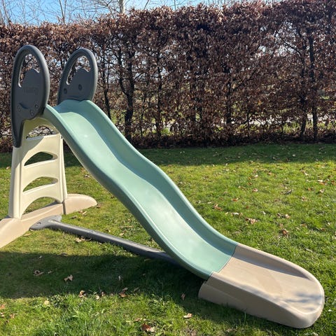 Bamse rutsjebane i plast i grøn og rød. Velegnet som legetøj til børn til brug både inde og ude, afhængigt af underlag og pladsforhold. Rutsjebanen er lavet i hård plast, som kan tørres af med en fugtig klud. Egnet til mindre børn under opsyn af en voksen.